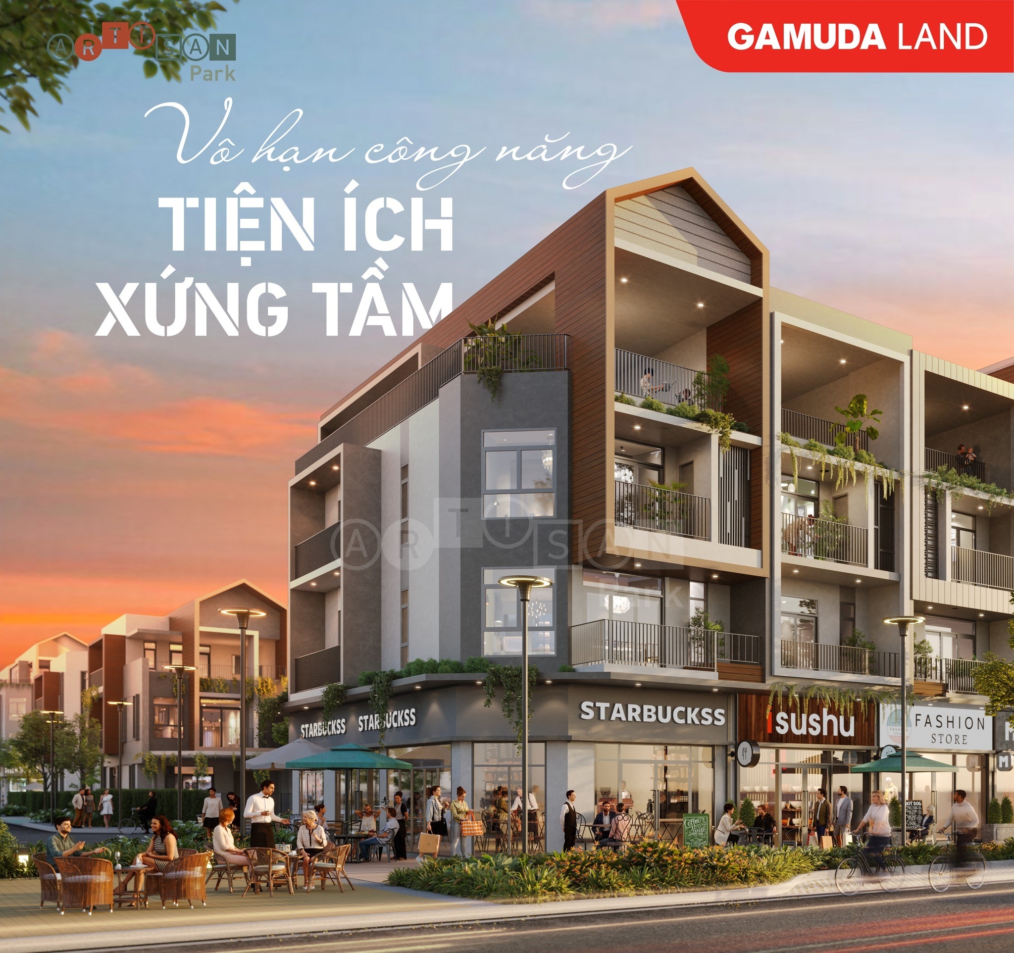 Đón đầu sự phát triển của Bình Dương trong tương lai, Artisan Park là dự án nhà phố thương mại độc đáo, được kiến tạo bởi Gamuda Land để trở thành điểm đến mua sắm, hội họp náo nhiệt, hòa quyện trong thiết kế biophilic tạo nên “bức tranh hội hè bất tận” tại trung tâm Thành phố mới Bình Dương.